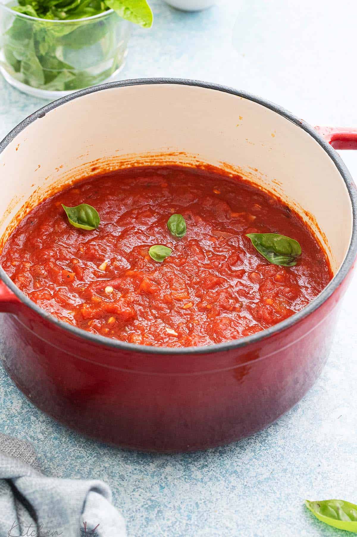 - Serve with crusty bread. A warm baguette, sourdough or the homemade Dutch oven bread is perfect for soaking up every last drop of this Italian sauce.